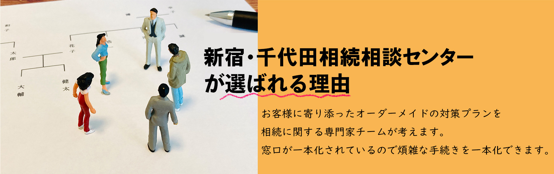 新宿・千代田相続相談センターは、相続に関する全ての手続きをワンストップでサポートする【相続特化型の専門相談センター】です。